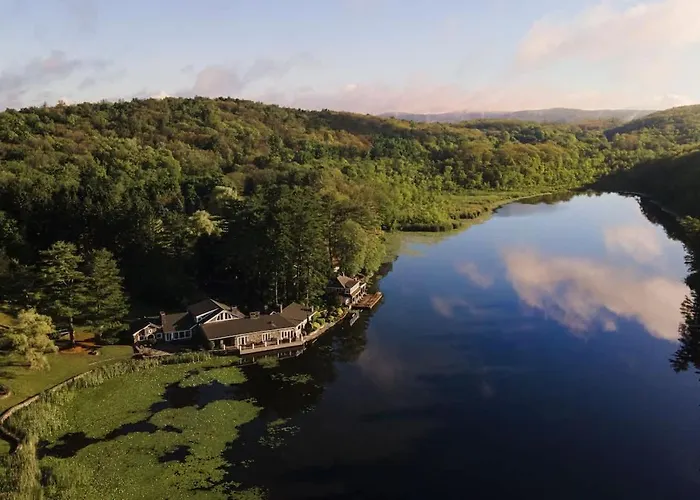 Private 37 Acre Lake Estate On 164 Acres - 11 Br est situé à 6 km de Site historique national de Vanderbilt Mansion et propose à ses clients un jacuzzi pour un séjour plus relaxant. Dotée d'un accès à un patio, la villa est située à 7 km de Top Cottage.